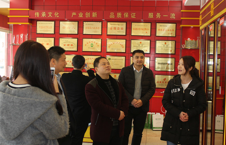 1月12日下午,湖南省商湖南省县域经济研究中心调研部主任雷鹏、副主任何运忠、总编辑肖和宽等一行在永州市商务和粮食局副局长李烨、零陵区副区长邓建国等人员的陪同下,来异蛇科技公司考察。